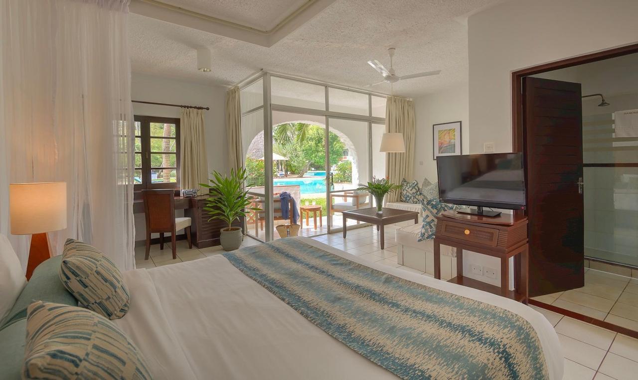Lodge se nachází v srdci národního parku Tsavo East, u slavné Aruba Dam, která přitahuje širokou škálu divoké zvěře. Lodge nabízí komfortní ubytování ve stylových stanech a bungalovech s vlastní verandou, odkud můžete pozorovat zvířata přímo z pohodlí vašeho pokoje. Hosté si mohou vychutnat bazén, restauraci s místními i mezinárodními specialitami a výhled na krásnou africkou krajinu. Diani Sea Resort (Diani Beach) - ★★★★